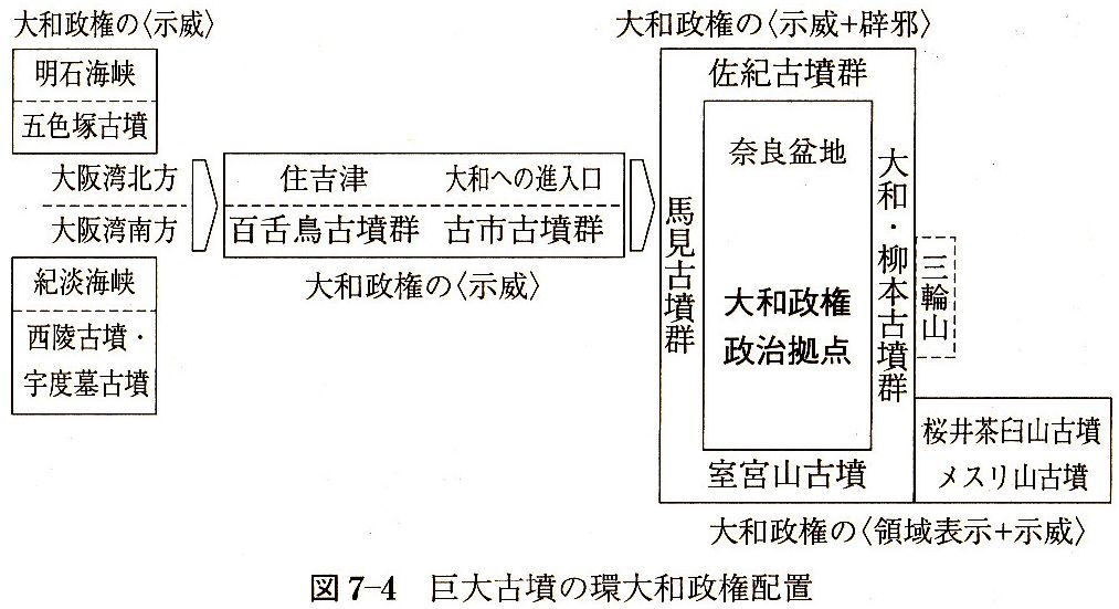 大和・柳本古墳群、馬見古墳群、佐紀古墳群、古市古墳群、百舌鳥古墳群を五代古墳群と位置付け、その配置を環大和政権配置と名付けて図式化するなど、前方後円墳を体系化して歴史を紡ぐという観点も共感できる。